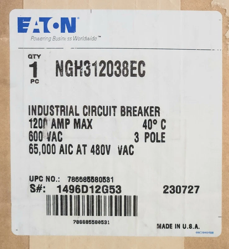 EATON NGH312038EC 3 Pole 500-1200 AMP NGH-C Circuit Breaker 1200 AMP Rated