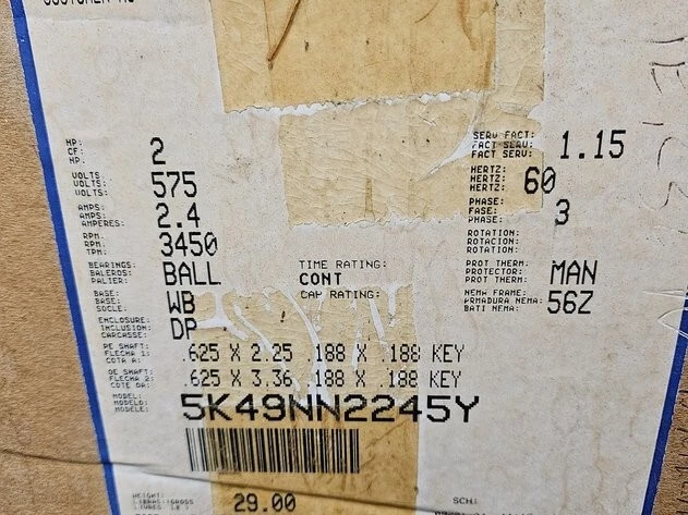 GE motor 5K49NN2245Y 2 HP Double shaft 3450 RPM 575 volt 3 PH 2.4 amp 56Z f