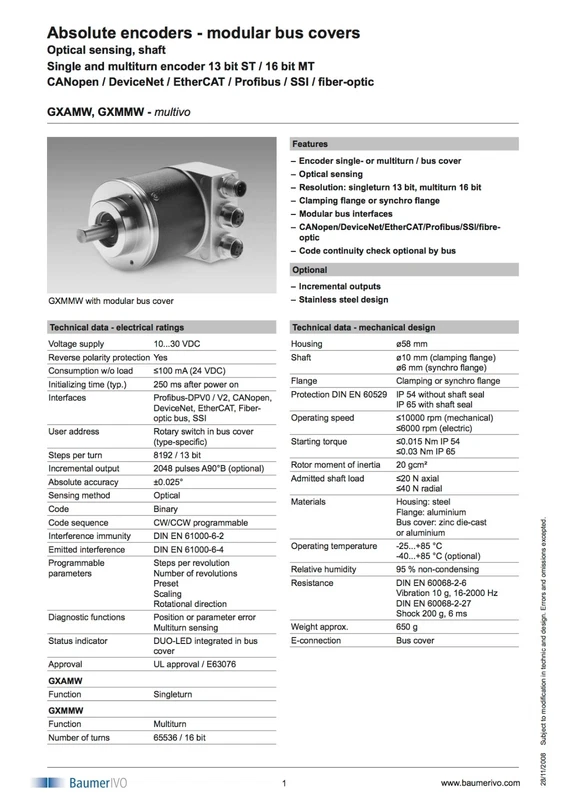 Ship2day UPS GXMMW.A205PA2 Baumer Multivo 101201298 CANopen GXMMW A205PA2 GX MMW