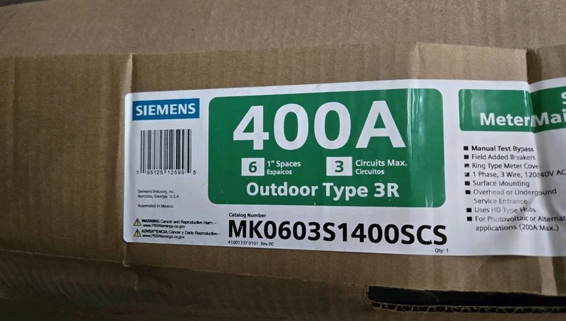 SIEMENS SOLAR READY 400 AMP Meter Main Electrical Panel MK0603S1400SCS